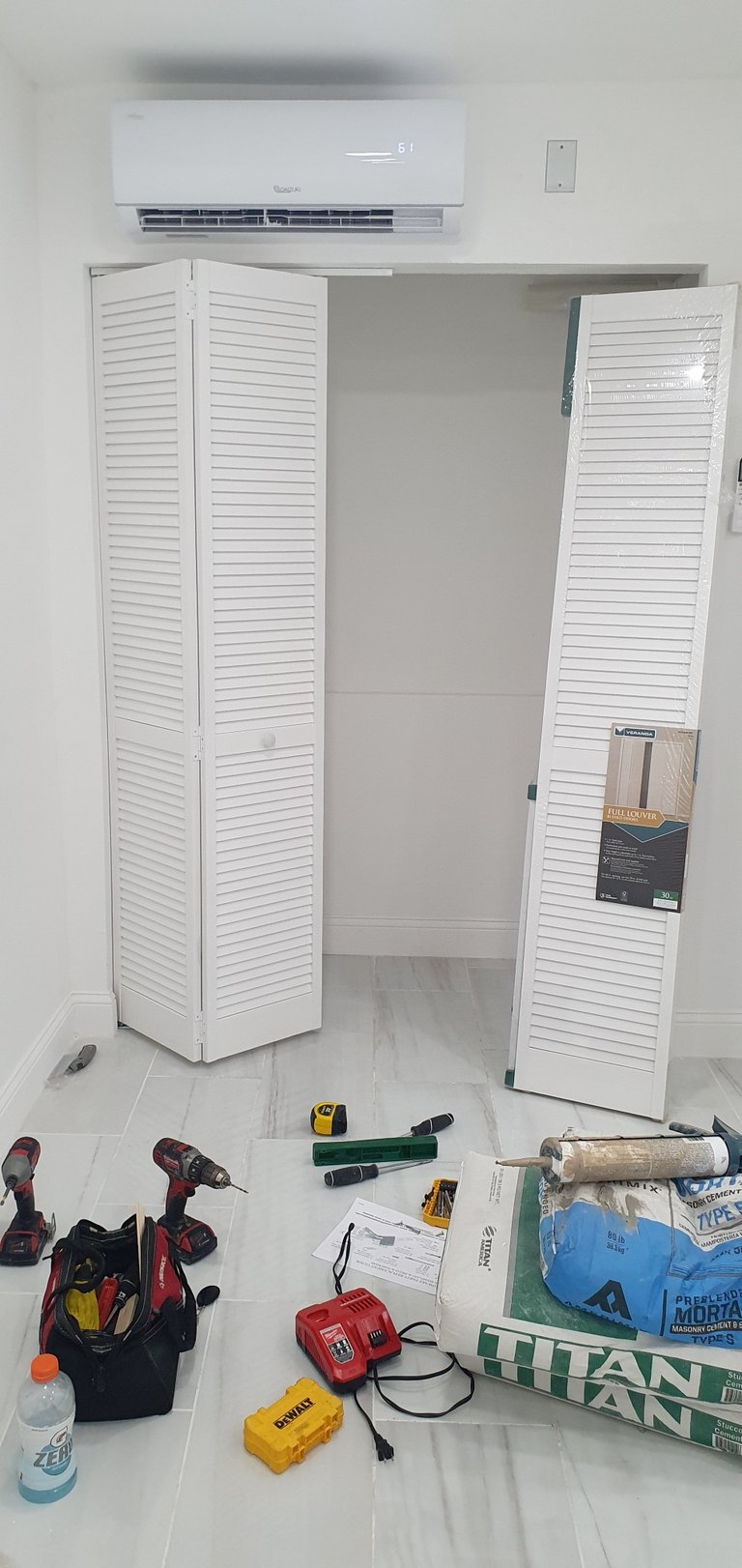 Mirror installation, preparing houses for sale.Pet door installation, sanding, and screen repair.Shower and tile work, sliding door installation.Storm door and windows, weather stripping for doors and windows.